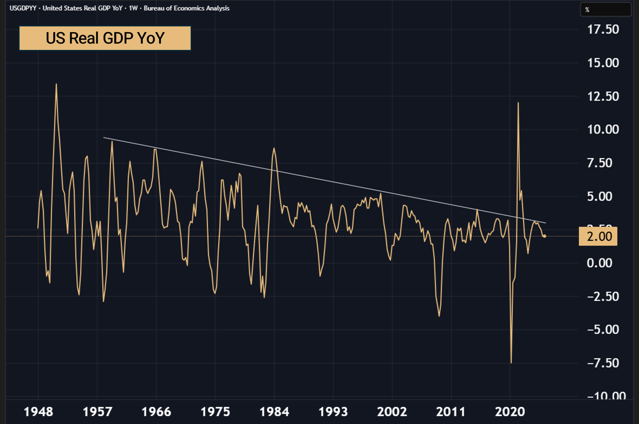 I de seneste måneder har man talt meget om, hvorvidt USA er på vej ind i en recession. For at nærme sig svaret på det spørgsmål, er det nødvendigt at tage det helt store perspektiv og blandt andet kigge nærmere på BNP.